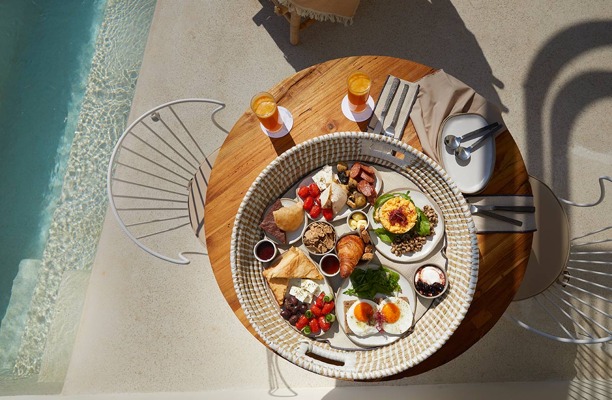 These four gracious suites surrounding the main pool all have majestic sea views. Each suite opens onto a terrace with a plunge pool, where you can linger over a lavish breakfast, iced coffee or spritz. The shimmering sea is just steps from your door.